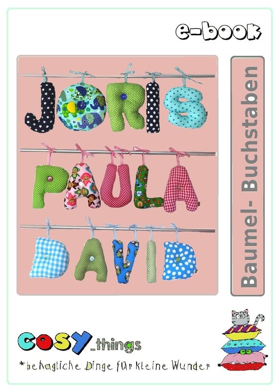 Dieses tolle Ebook beinhaltet eine Schritt für Schritt-Nähanleitung sowie einmal das ganze Aphabet, um direkt selbst Baumel-Buchstaben zu nähen.