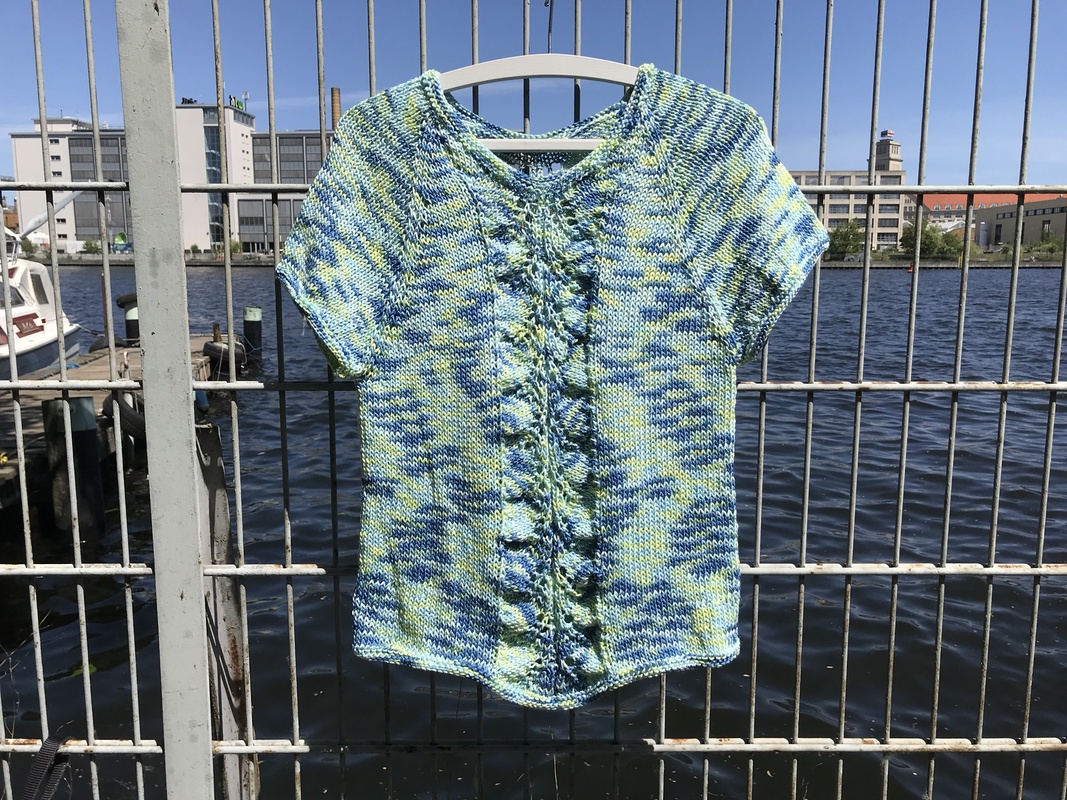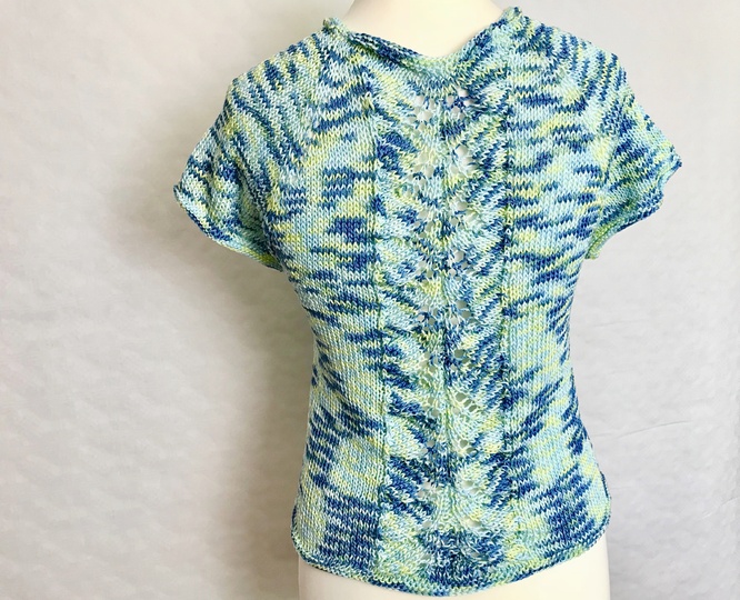 Dieses luftige Sommershirt wird von oben nach unten gestrickt. Das Ajourmuster ist der Hingucker am Vorderteil als auch am Rücken.