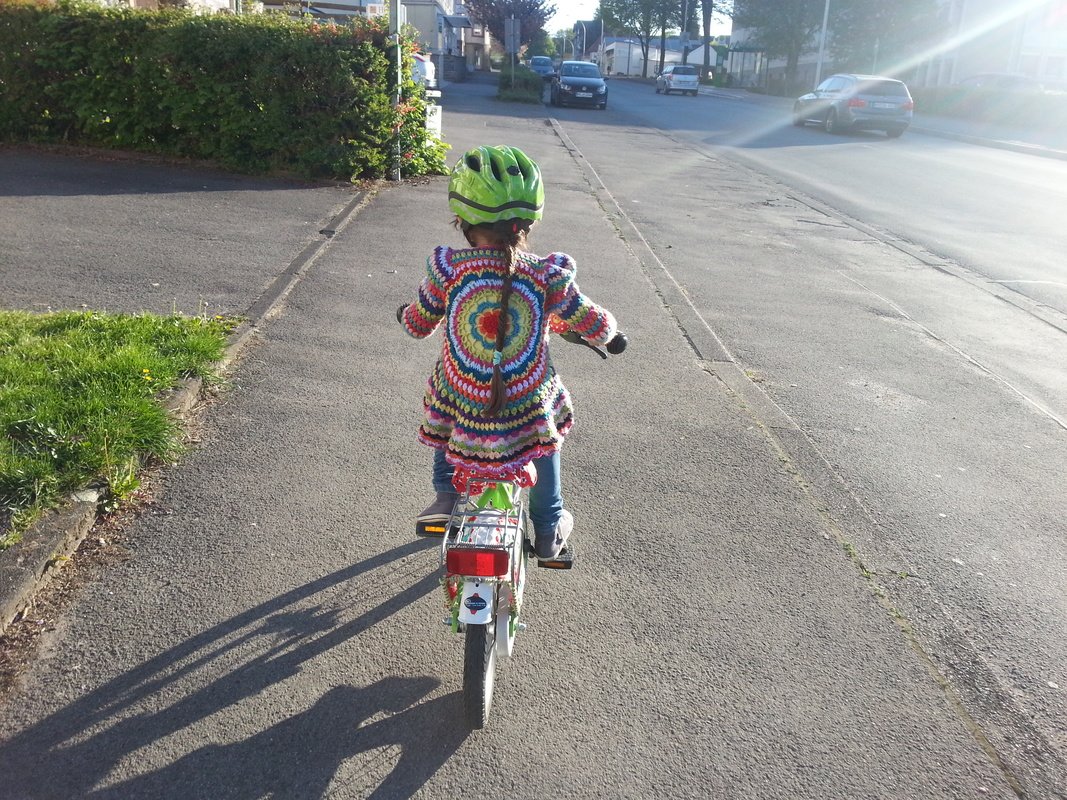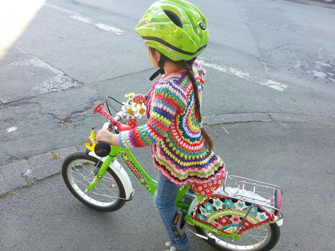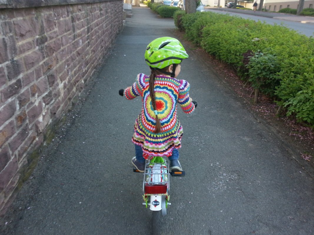 Hier bekommst du die Anleitung für diese Kreisjacke in der Größe 98/104, mit vielen Variationsmöglichkeiten.