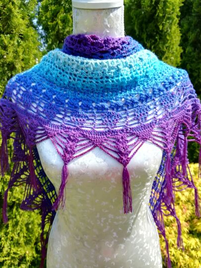 Dieses Tuch ist der ideale Begleiter für laue Sommerabende. Die Bordüre ist wahnsinnig effektiv und ganz simpel zu häkeln.