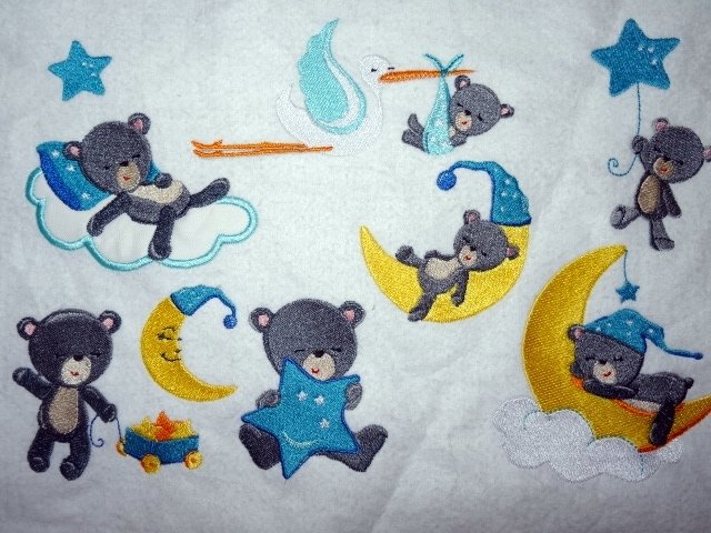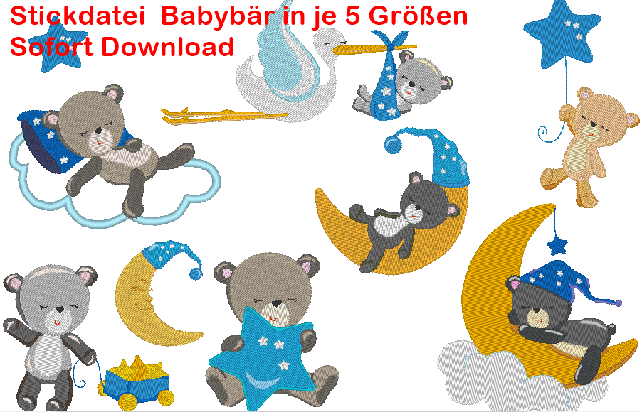 7 allerliebste Bärchen mit Storch, Mond und Stern