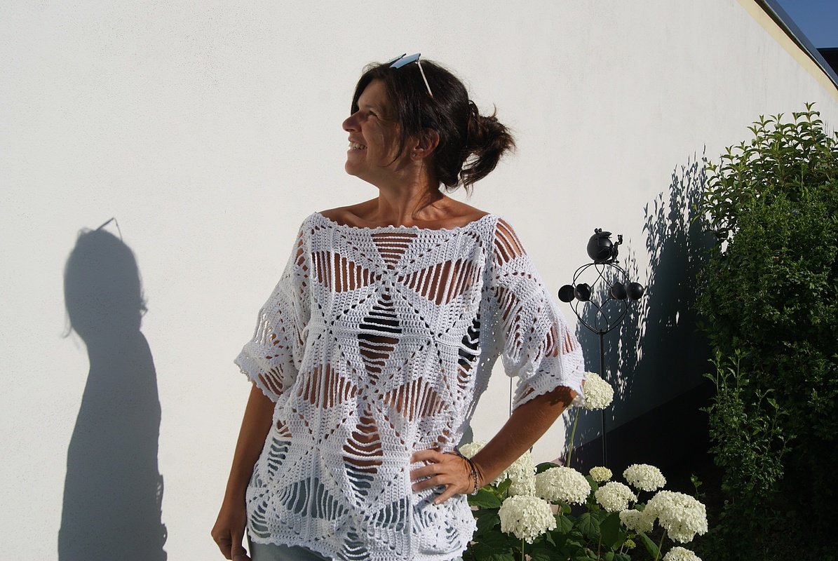 Wunderschönes Sommershirt im Oversizelook ganz einfach gehäkelt! Ein Must HAVE und sicherer Hingucker! Für alle Größen leicht anzupassen!