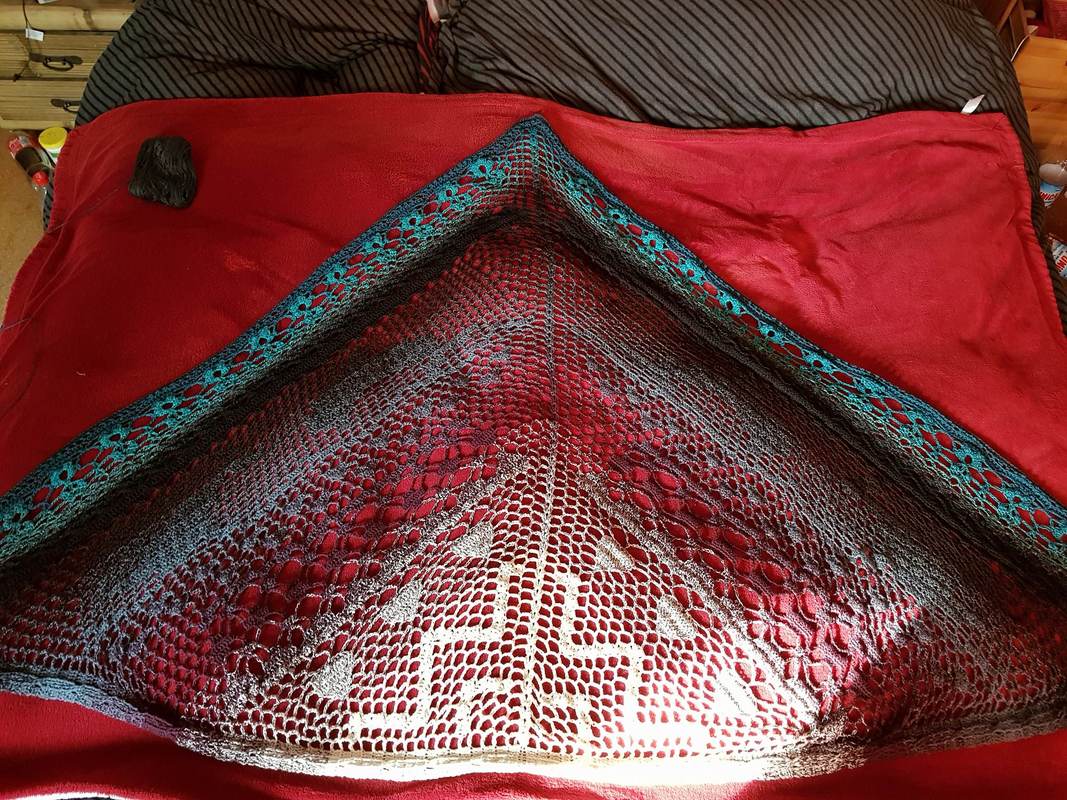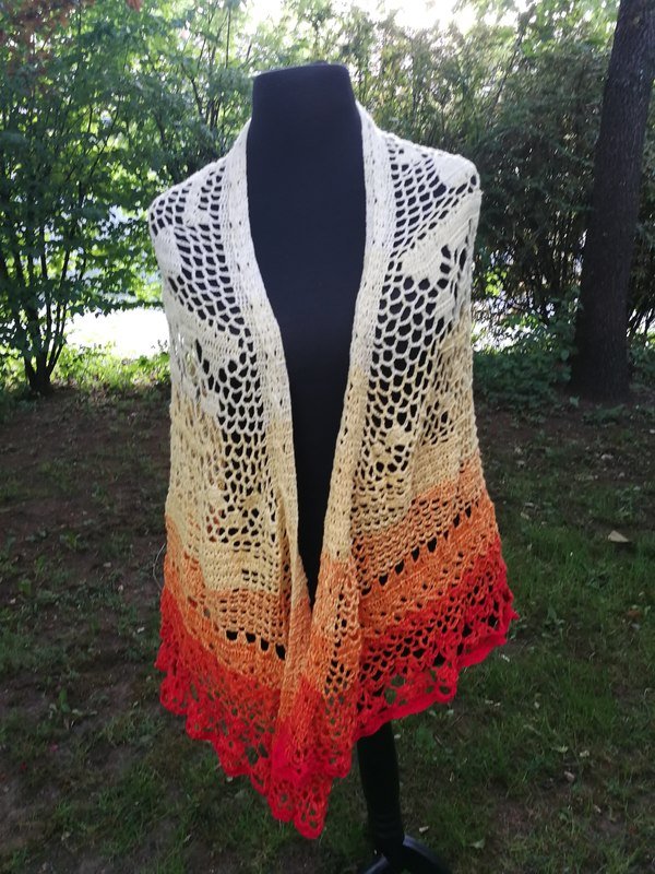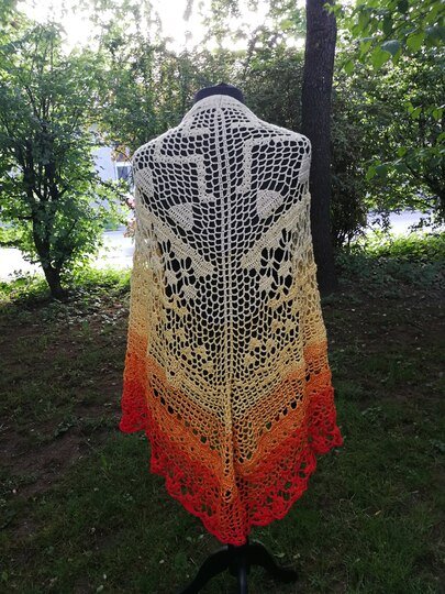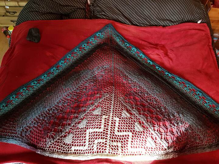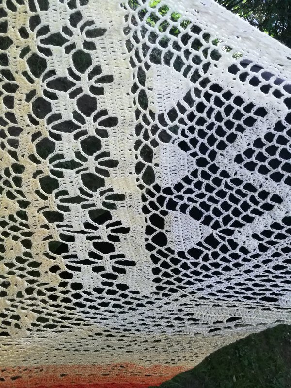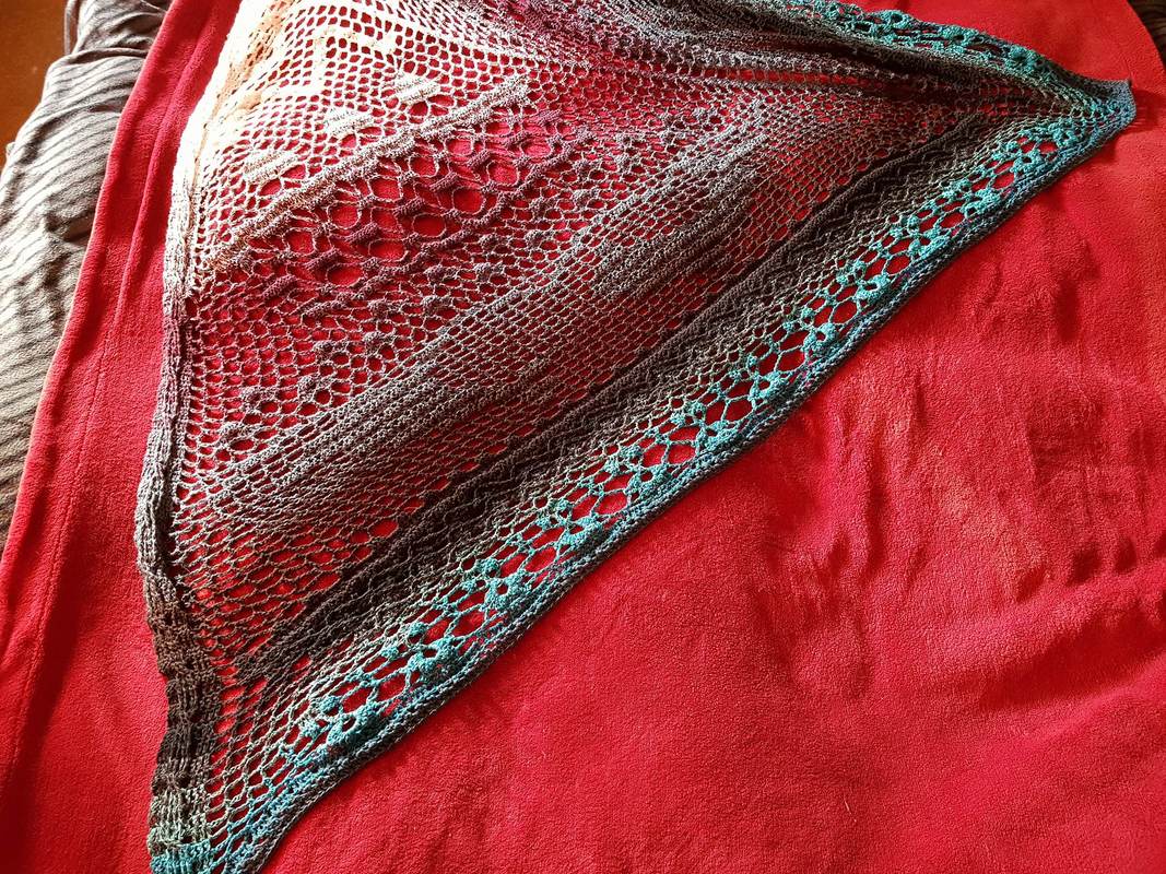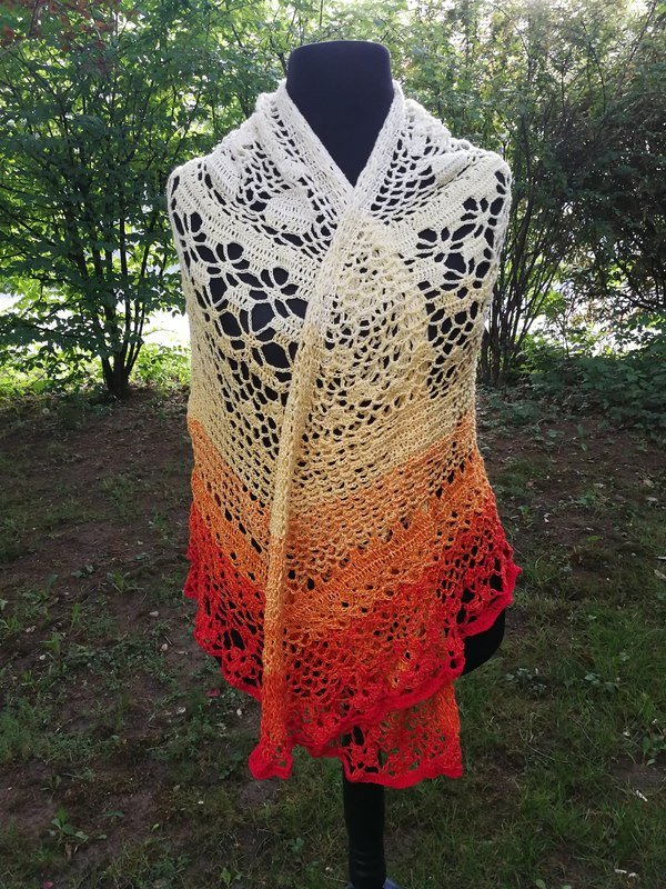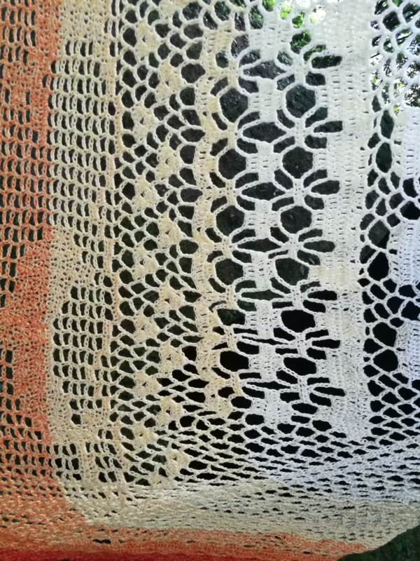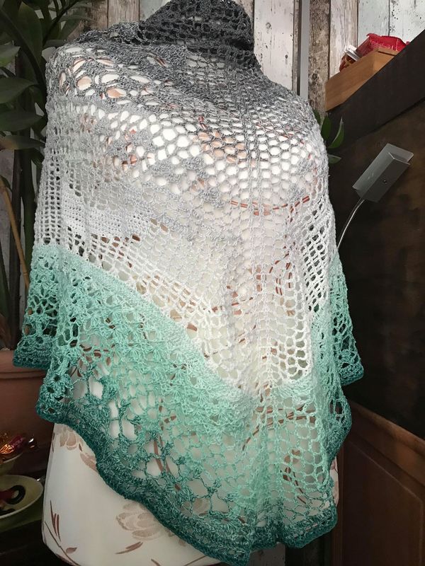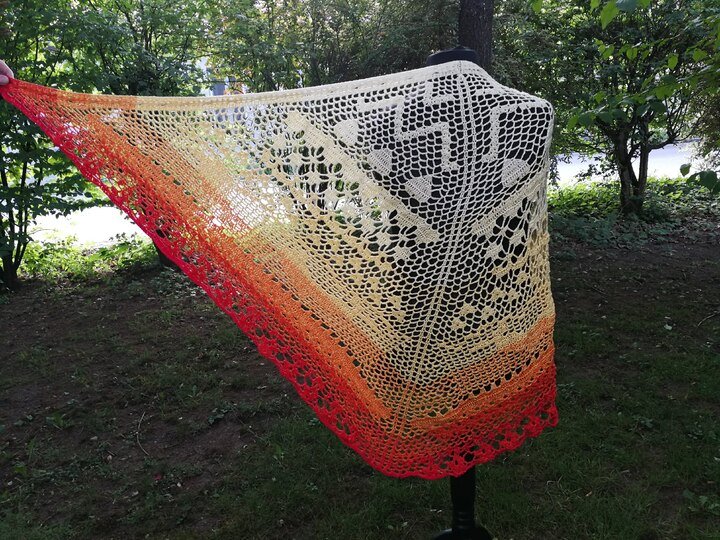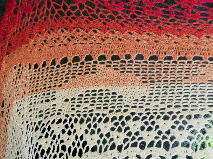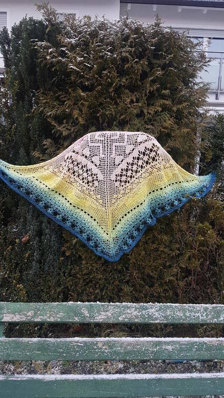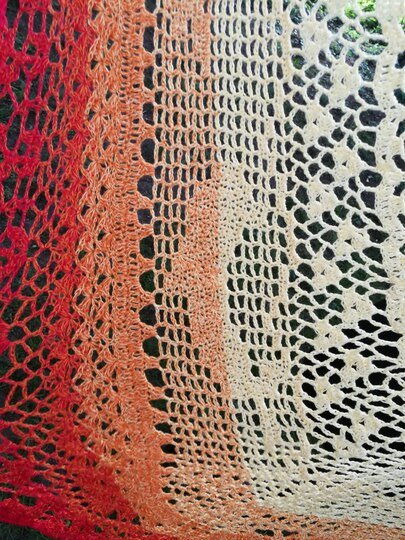 Ein außergewöhnliches XXL Tuch in dem sich keine Reihe gleicht. Nichts für schwache Nerven. Eine besondere Herausforderung für die Geduld, aber es lohnt sich.