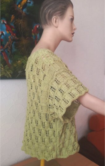Mit dieser Anleitung könnt Ihr euch diesen hübschen Pulli im Ajourmuster stricken.