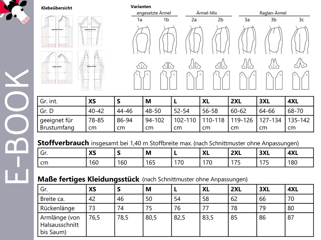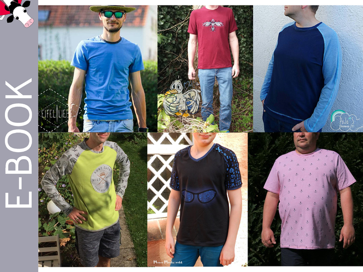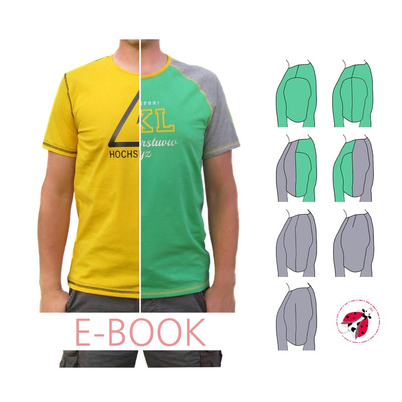 Bei jeder Variante gibt es jeweils ein vorderes und ein hinteres Shirt, sodass angesetzte Ärmel und Raglanärmel auch kombiniert werden können. So ergibt sich eine raffinierte, cool aussehende Unterteilung.