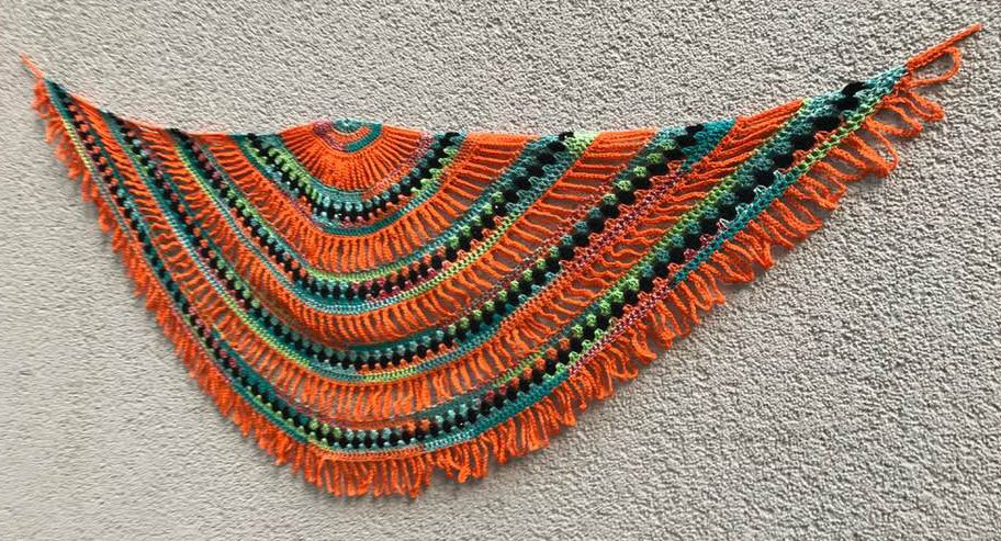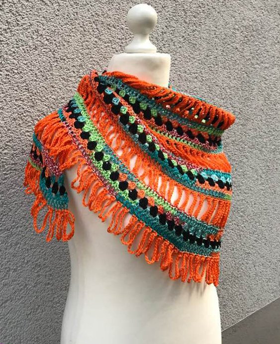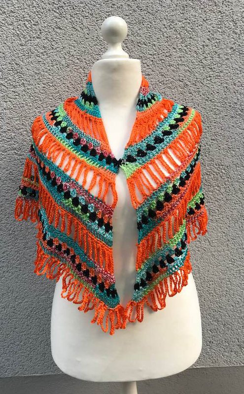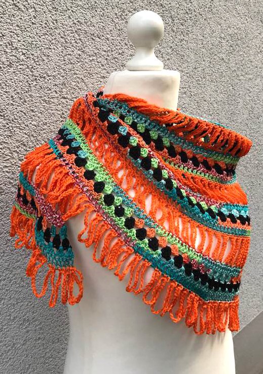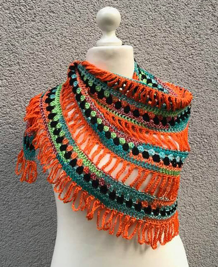 Das Tuch RENATE hat ein auffälliges, aber sehr leichtes Muster das sich mehrfach wiederholt...beim Häkeln muss man bei den Schlaufen allerdings immer mitzählen...ist aber ganz einfach!