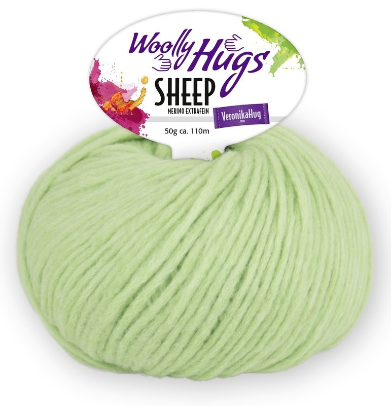 *50 g Pistazie (Farbe 77) „Woolly Hugs SHEEP - Uni“ (50% Wolle, 28% Baumwolle, 22% Polyamid, LL = 110 m/50 g) von Langendorf & Keller