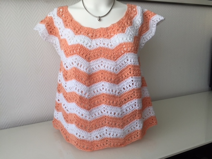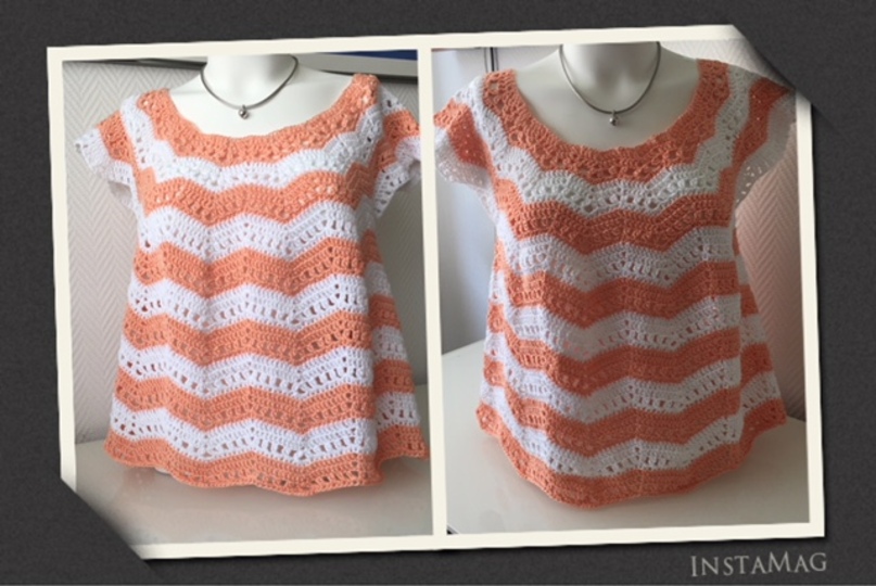 Dieses wunderschöne Shirt sieht nicht nur toll aus durch sein Zickzack Muster, sondern es wird auch komplett in einem Stück gehäkelt.