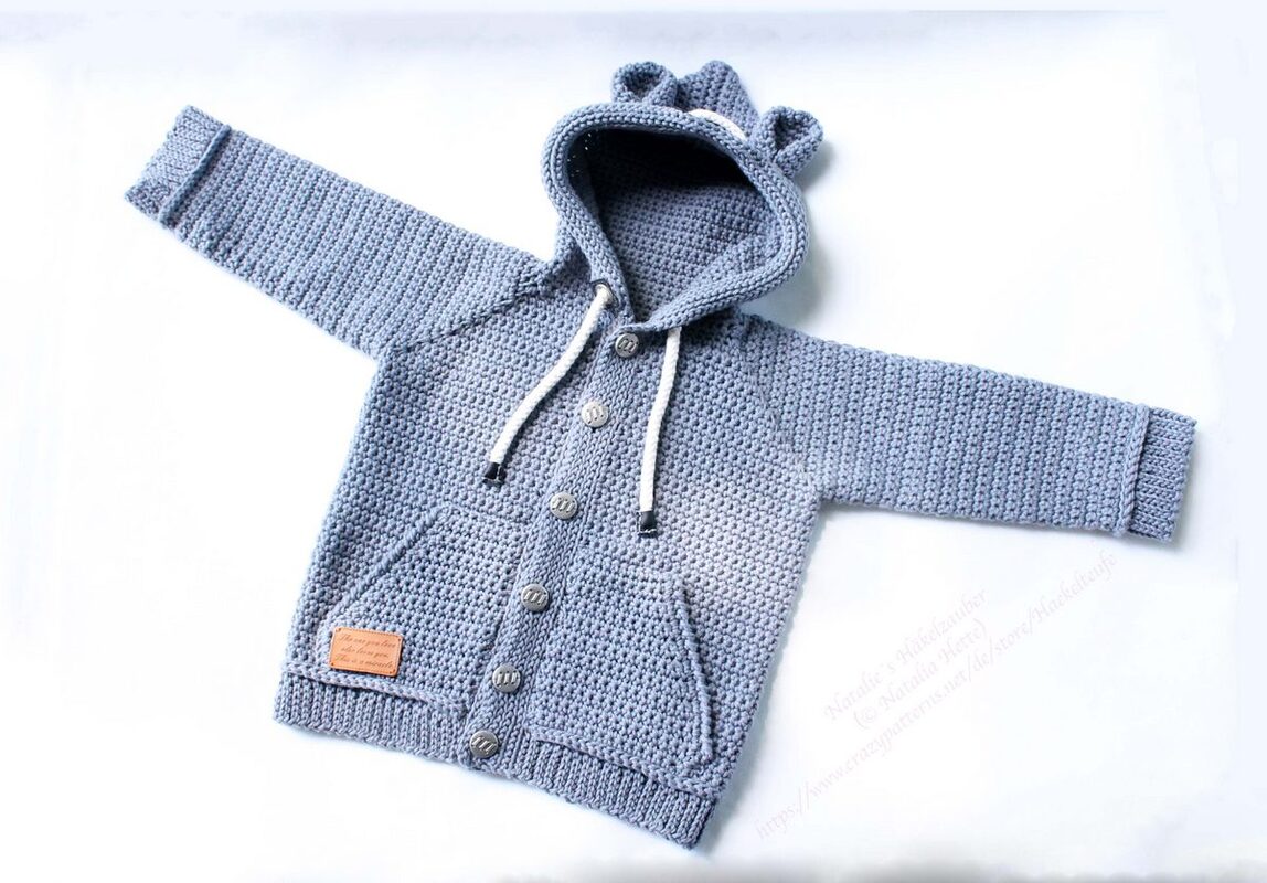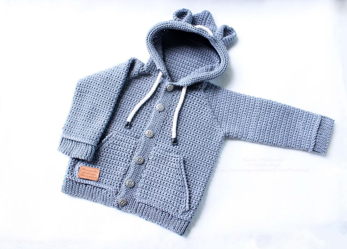 Die Jacke ist sehr gemütlich. Sie wird der perfekter Begleiter Ihres Kindes bei abendlichen Spaziergänge, Spielen, Toben etc. Er ist auch perfekt für sportliche Aktivitäten geeignet. Sie kann sowohl für Winter, als auch für Sommer gehäkelt werden (abhängig von der Wolle) und ist eine unisex Raglan-Jacke (also für Jungs und Mädels, für Frauen und Männer, geeignet).