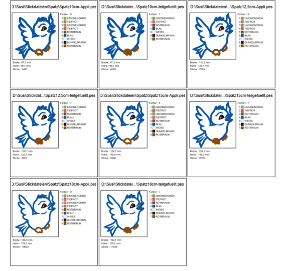 Ihr bekommt 8 zauberhafte mit viel liebe digitalisierte Vöglein für den 10 cm 13x18 cm und 20 cm Rahmen