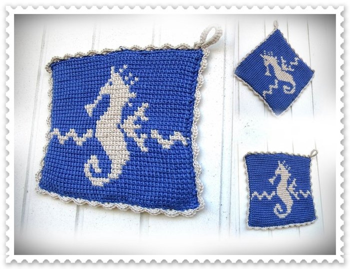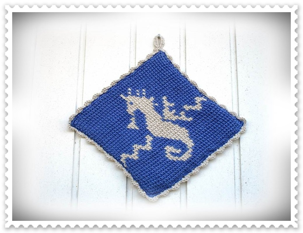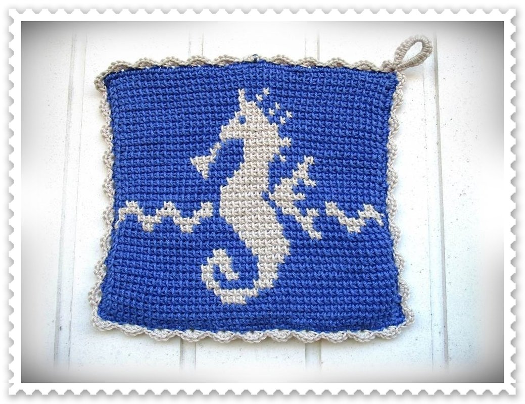 Für alle Liebhaber der maritimen Deko, ist dieser Topflappen mit dem charmanten Seepferdchen in der Küche unentbehrlich.
