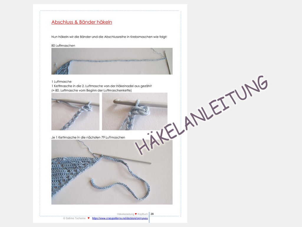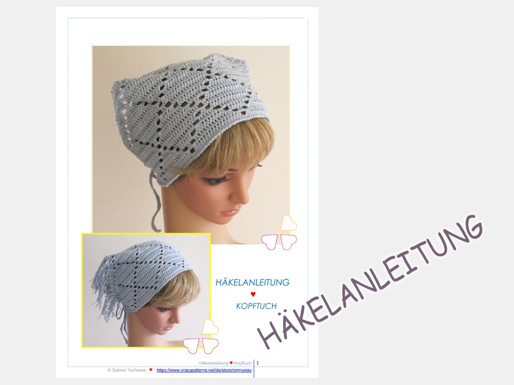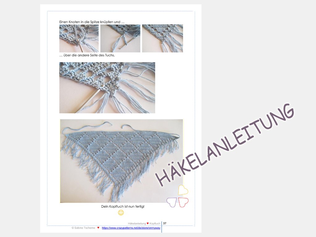♥ Mit der Schritt für Schritt Anleitung schaffst Du das im Nu. Du kannst das Kopftuch auch in jeder beliebigen Größe häkeln. Alle Häkelmaschen und Arbeitsschritte werden sehr genau erklärt und mit vielen Abbildungen veranschaulicht. Die Häkelanleitung ist sehr anfängerfreundlich verfasst und hat 41 Seiten.