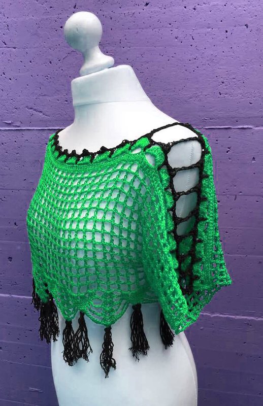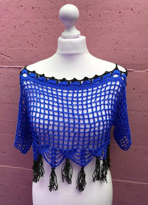 Wie auf den Fotos zu sehen ist, passt der kleine Bolero OBERARME ADE "Royal", der Schneiderpuppe Größe 38 genauso wie mir ( ich habe Größe 50 ...ich gebe zu, bei mir sitzt sie natürlich enger und auch weiter oben, aber er hat noch Spielraum!