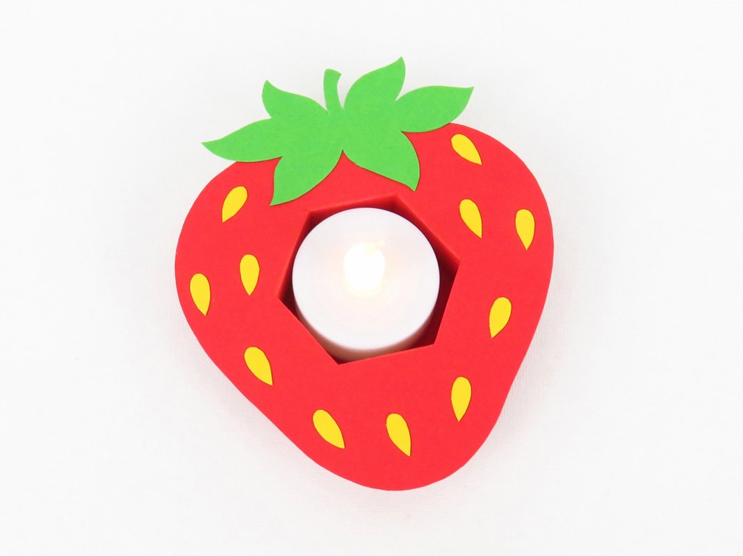 Mit diesem schönen Teelichthalter können auch Kinder zu der Erdbeerzeit-Dekoration beitragen.