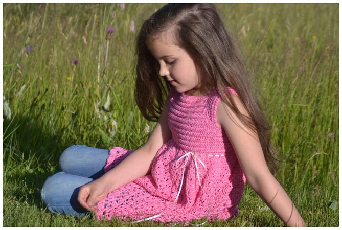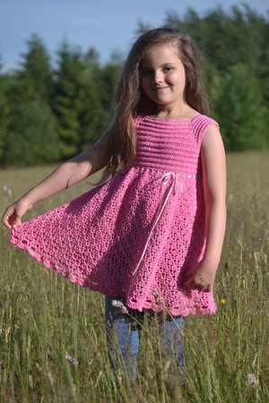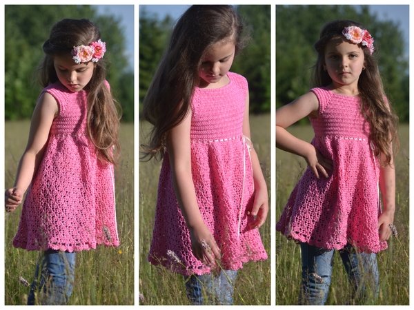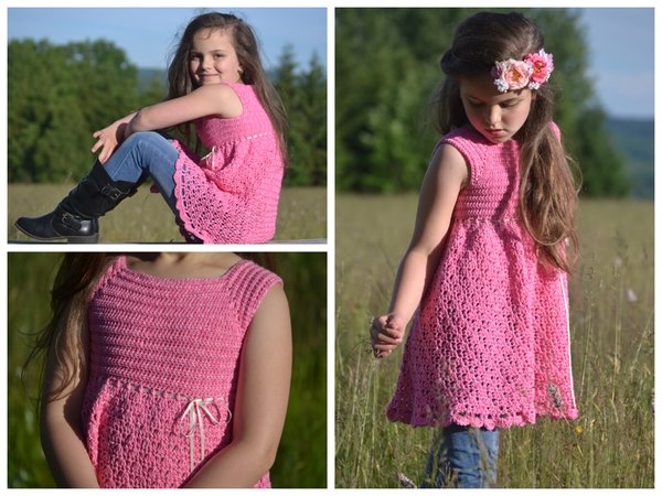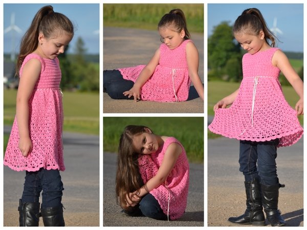Wenn du mit einer neutralen Farbe häkelst, dann sieht die Tunika nicht so verspielt wie hier aus, sondern bekommt gleich, je nach Farbe, einen sportlichen oder sogar edlen Look.