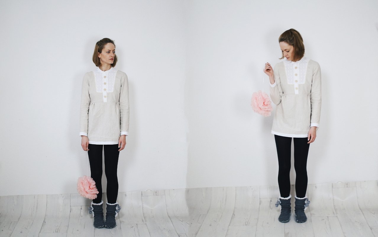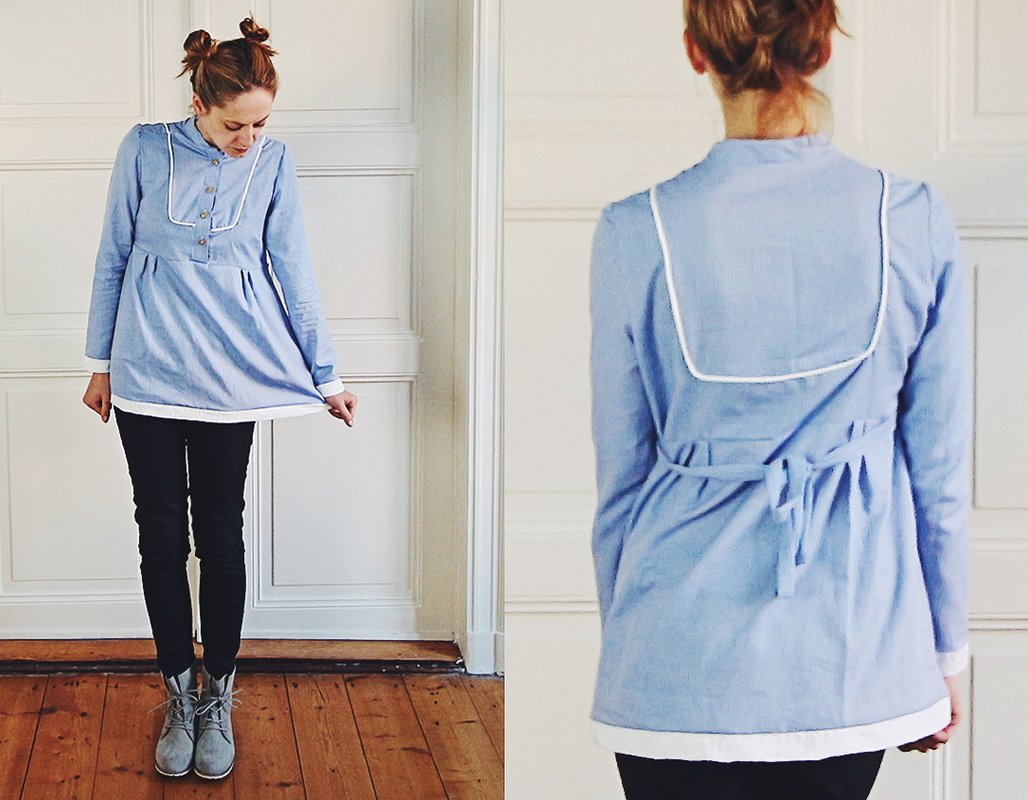 Ausführliche Nähanleitung, Schritt für Schritt erklärt mit über 200 Farbfotos – inkl. Schnittmuster. Longbluse Polly kannst du in Größe 34 – 42 nähen. Die Einsätze im Brust- und Rückenbereich machen die Bluse zu etwas ganz besonderem. Das Blusenkleid ist prima kombinierbar mit Shorts, Rock oder einer engen langen Hose oder Leggings.