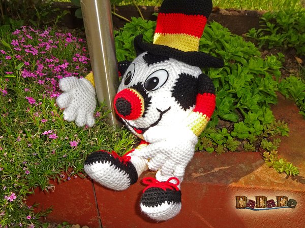2.Mit der Nadelstärke 3,5 gehäkelt, hat Rudi ungefähr;