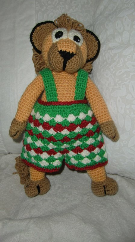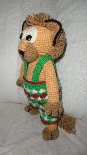 Mit Wolle der Nadelstärke 3-4 wird der Löwe ungefähr; 36cm hoch