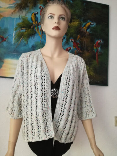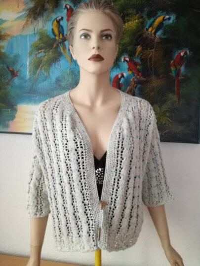 Mit dieser Anleitung könnt Ihr euch diesen hübschen Bolero / Shrug / Kurz Jacke im Ajourmuster stricken.