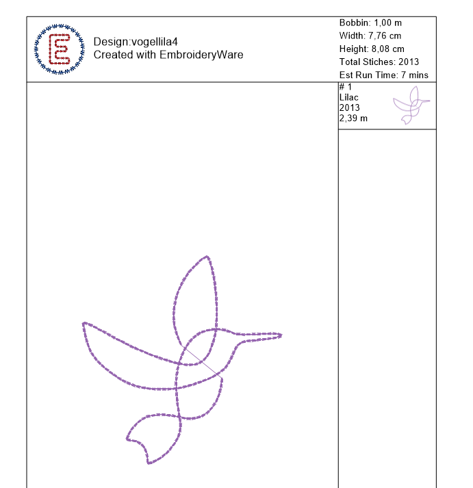 Dateiformate: DST / EXP / JEF / PES / XXX / HUS Die Datei kann mit My Editor in andere Formate umgewandelt werden.