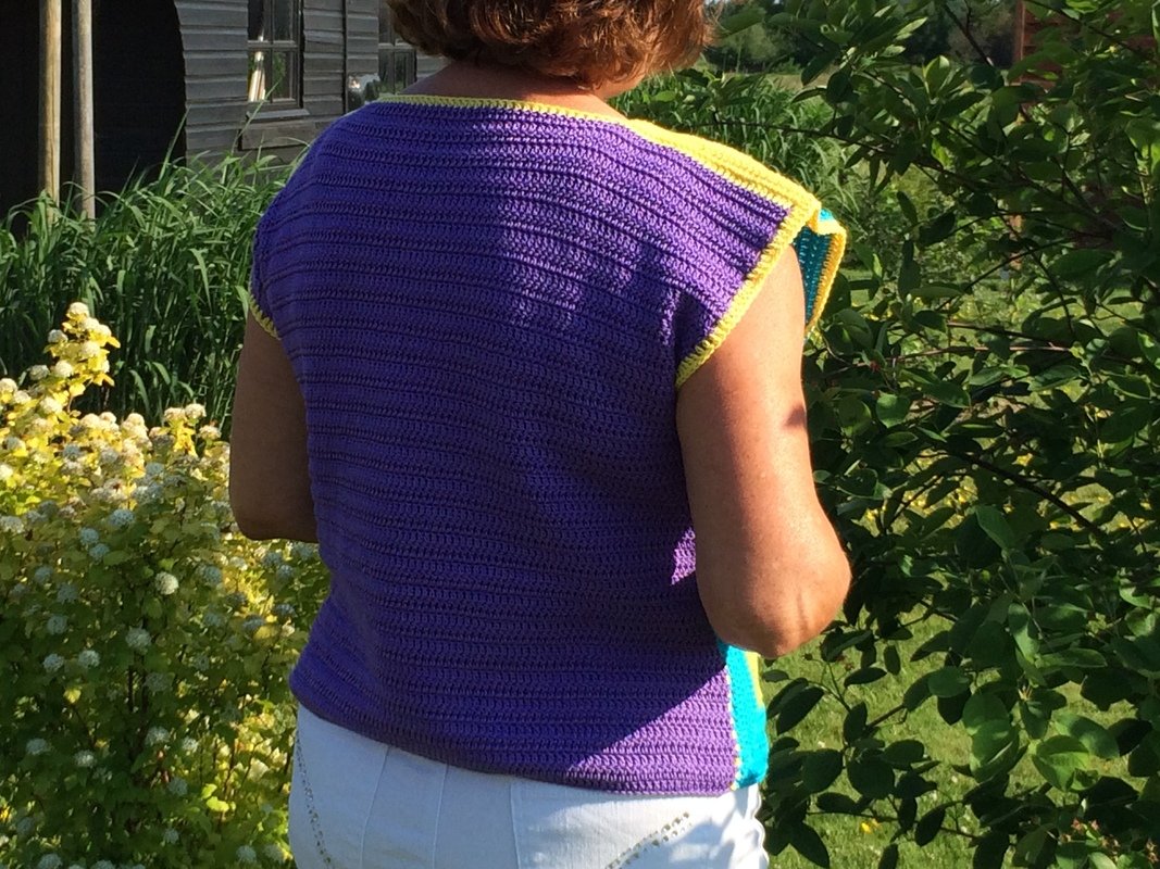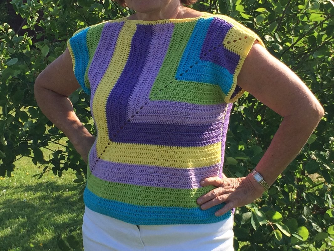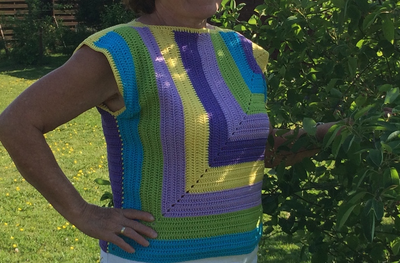 Der Pulli wird in fünf Farben aus einem Baumwollgarn gehäkelt.
