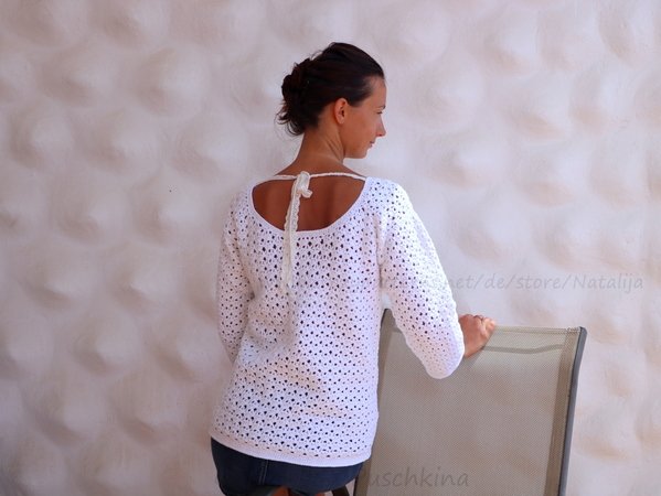 Sommer Pullover mit Bändern zum binden am Rücken.
