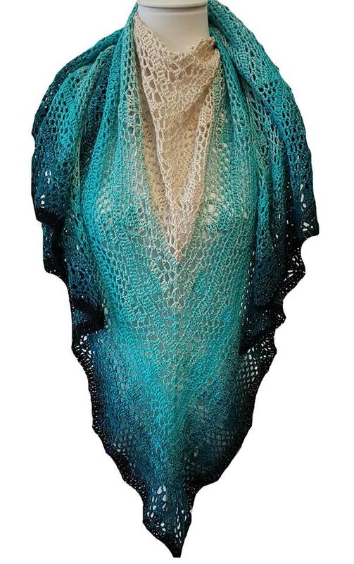 Für das Tuch habe ich Bobbel "Meti`s Traum" von MT.Bobbelwelt verwendet. 1000LL 3Fädig und mit