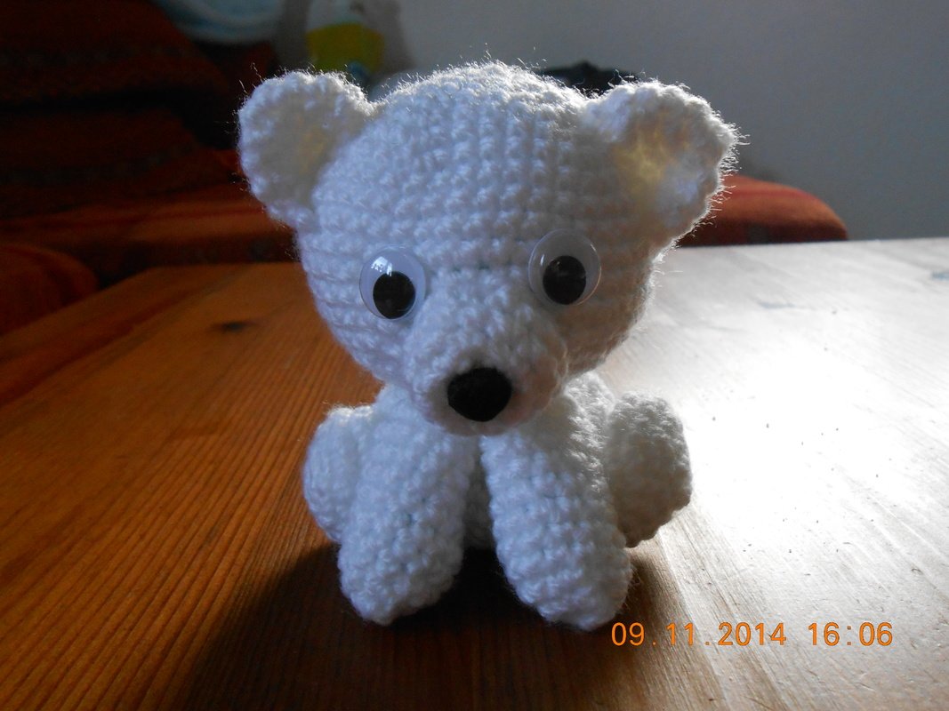 Auf 7 Seiten wird Schritt für Schritt erklärt, wie der Eisbär gehäkelt wird.