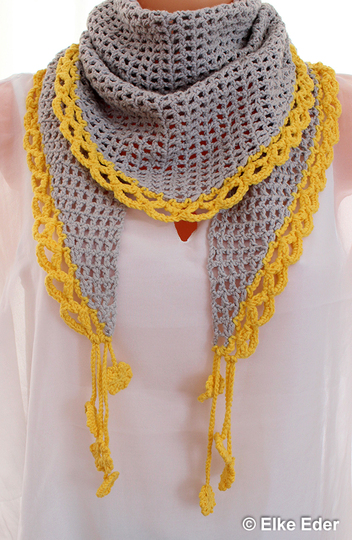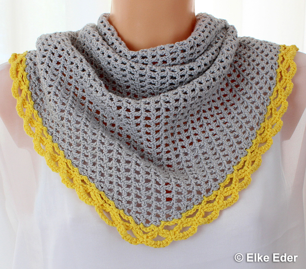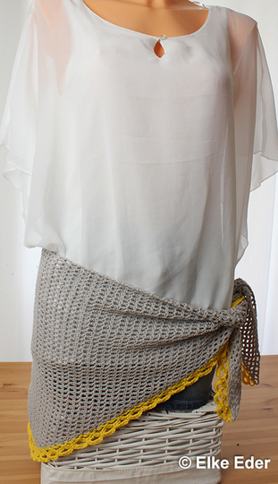 Das Tuch wird von der Seite aus gehäkelt und ist symmetrisch. Es ist schmäler als die bekannten Dreieckstücher - somit schön sommerlich leicht und vielseitig einsetzbar.