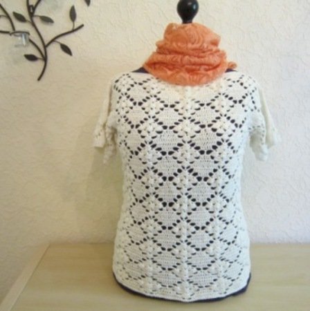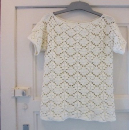Der Häkelshirt wird in einem Stück gehäkelt und erspart das Zusammennähen einzelner Teile.