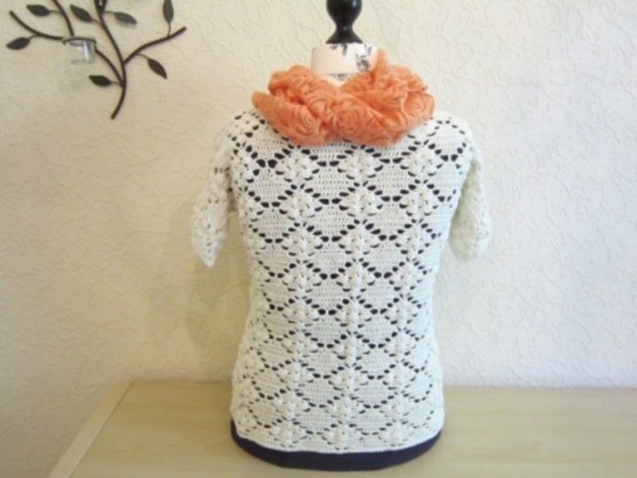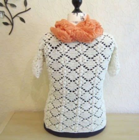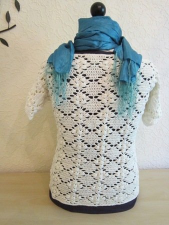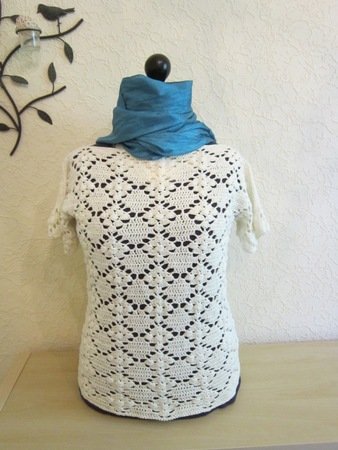Das Häkelshirt im Rautenmuster ist ein echter Hinkucker und peppt jedes Outfit auf. Das Shirt ist der perfekte Begleiter für den Strandbummel oder die Shoppingtour. Das Muster ist luftig und das Bändchengarn sehr angenehm auf der Haut. :-)