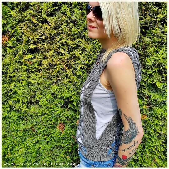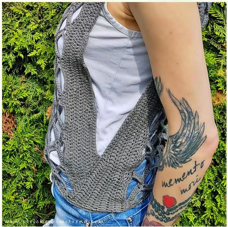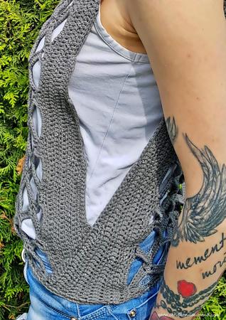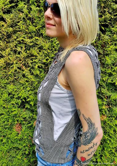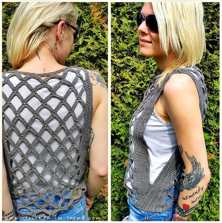 Die Besonderheit bei diesem Oberteil liegt darin, dass die Seiten offen bleiben und