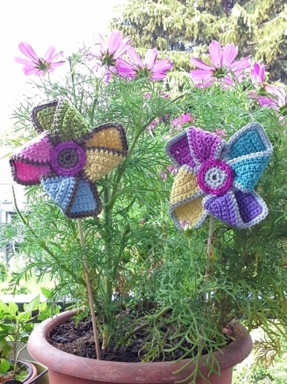Ein kleines feines Windrad schmückt jeden Blumentopf.