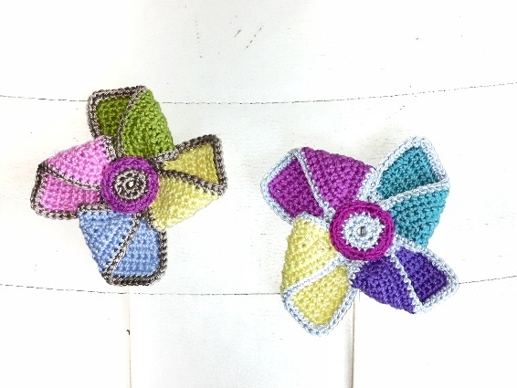Ein Windrad wiegt nur knappe 20 Gramm. Ich habe Baumwollgarn mit 150 Meter Lauflänge auf 50 Gramm und eine Häkelnadel Stärke 2,5 verwendet. Häkelt Ihr mit stärkerem Garn und Nadel, wird es eben ein bisschen größer und Ihr benötigt ein paar Gramm mehr