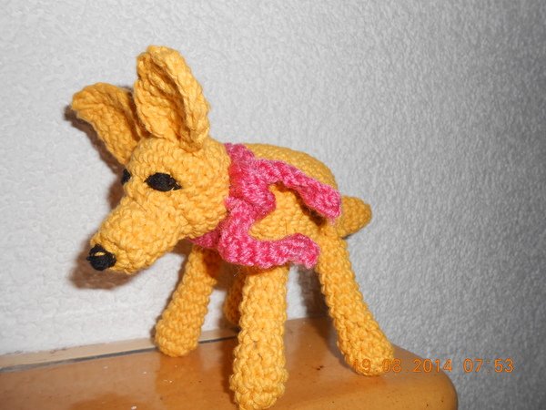 Auf 7 Seiten (auch Bilder) wird Schritt für Schritt erklärt, wie Hündchen Bruno gehäkelt wird.