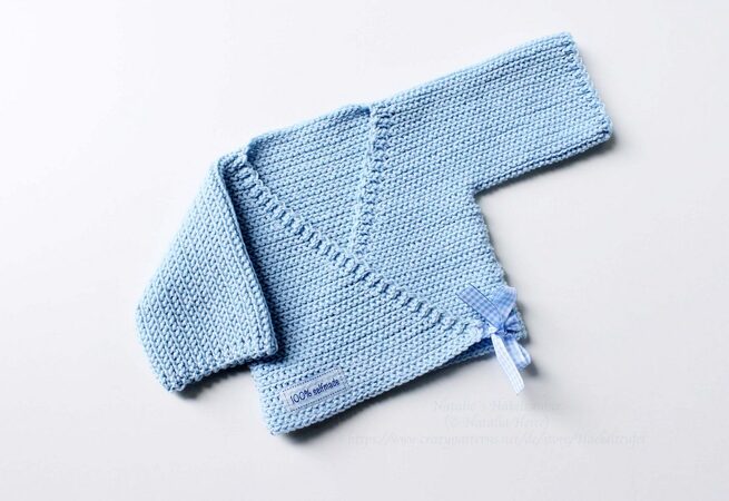 Vorteile einer Wickeljacke: 1. leicht anzuziehen; 2. hat nur zwei Nähte; 3. schnell und leicht zu häkeln; 4. kuschelig weich und angenehm für die Haut.