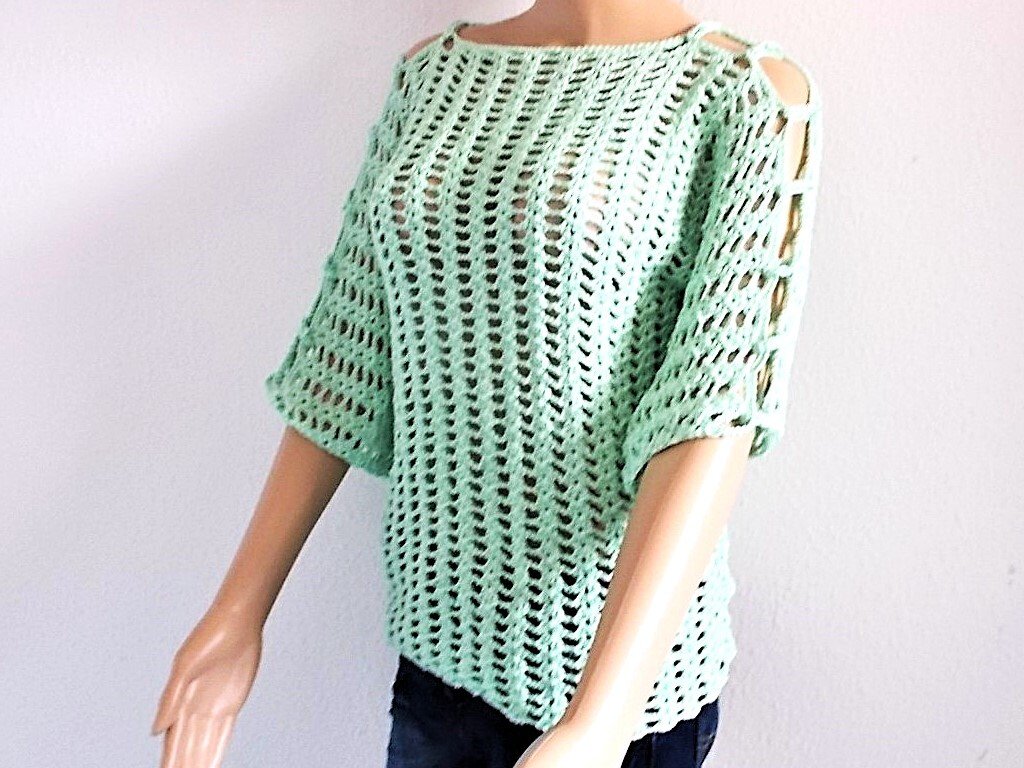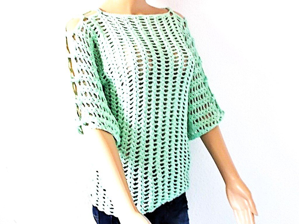 Häkelanleitung für einen luftigen Häkelpulli mit schönem Lochmuster.