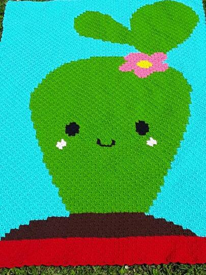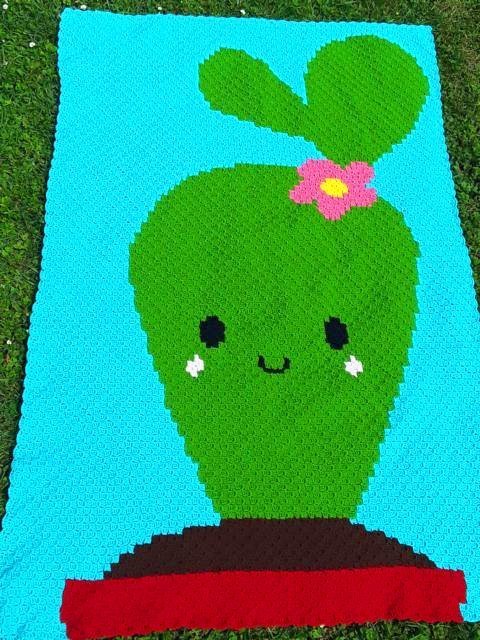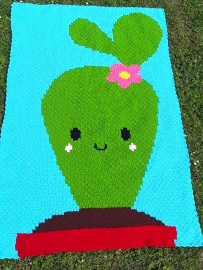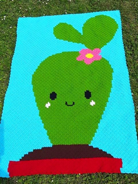 Diese Decke ist mit der "Ecke zu Ecke" oder c2c Technik gehäkelt.