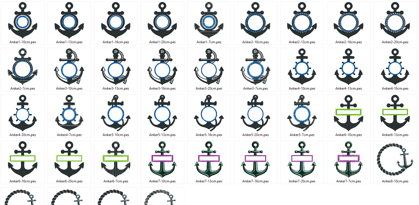 Ihr bekommt 8 verschiedene zauberhafte Anker mit viel Liebe digitalisierte Anker für den 10x10 cm , 13x18 cm und 20 cm Rahmen