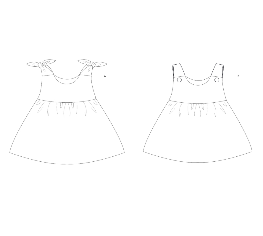 – Modell B CLARA: gefütterte Passe, Knopfträger, gekräuselter Rock