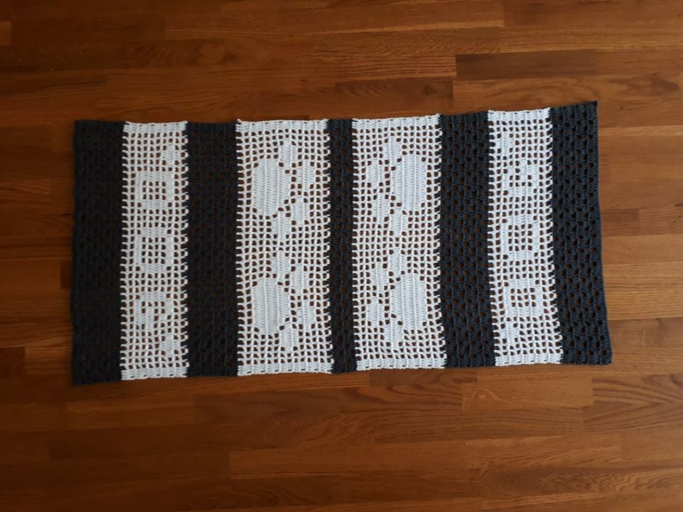 Voraussetzung: Filethäkeltechnik, also Luftmaschen und Stäbchen