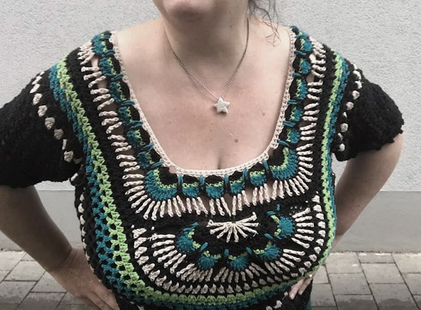 Das Oberteil "Half Mandala" kann man auch im Winter über einen dünne Pulli oder einer Bluse tragen