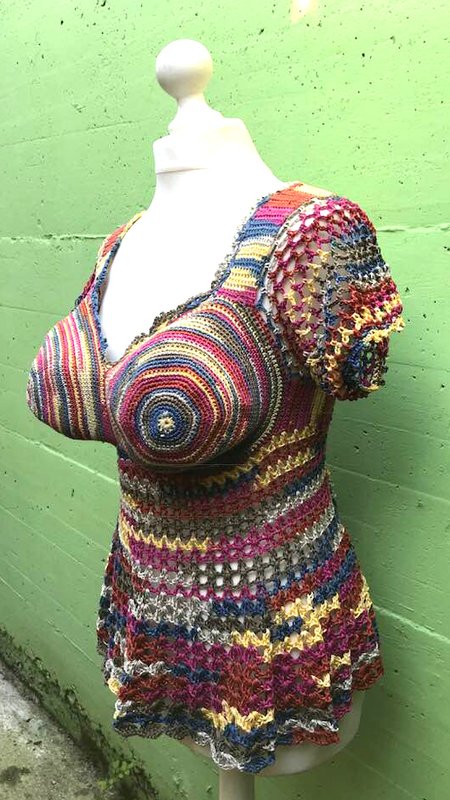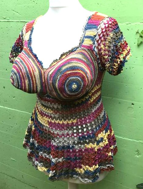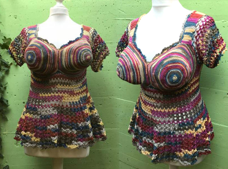Ich habe die BH-Größe 85 E und mir passt dieser Oberteil der Anleitung steht aber wie man ihn für seine (große) Größe auch noch größer machen kann ! Madonna wird vor Neid erblassen!
