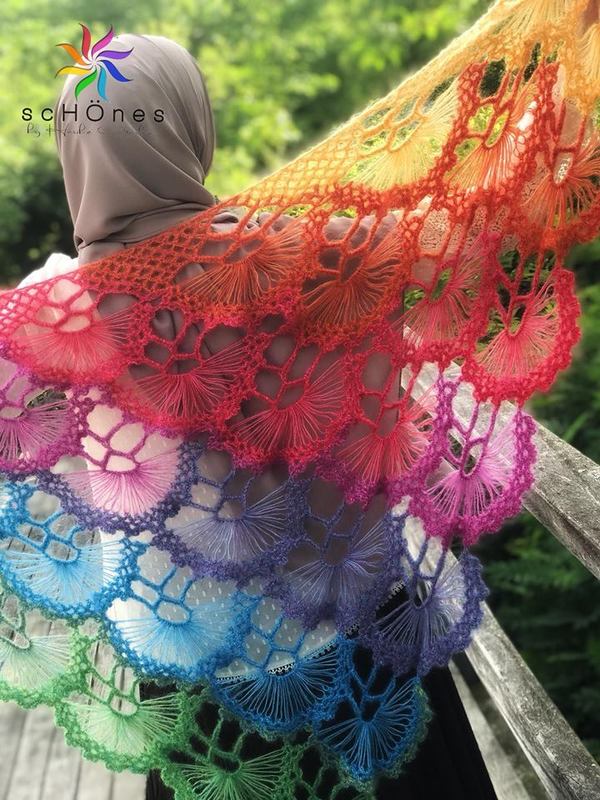 Mittlerweile findet ihr da dutzende von fertigen Tüchern - eine kribbelbunte Mischung unterschiedlicher Farben, Garne und Grössen - das Muster kann auch als Gardine oder gar Oberteil abgewandelt werden (ideen hierzu in der Gruppe).