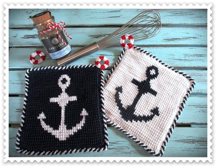 Diese Maritimen Topflappen, von den Seeleuten liebevoll Pottlappen genannt, sorgen für einen Blickfang in Eurer Küche und zaubern "Kombüsen-Flair".