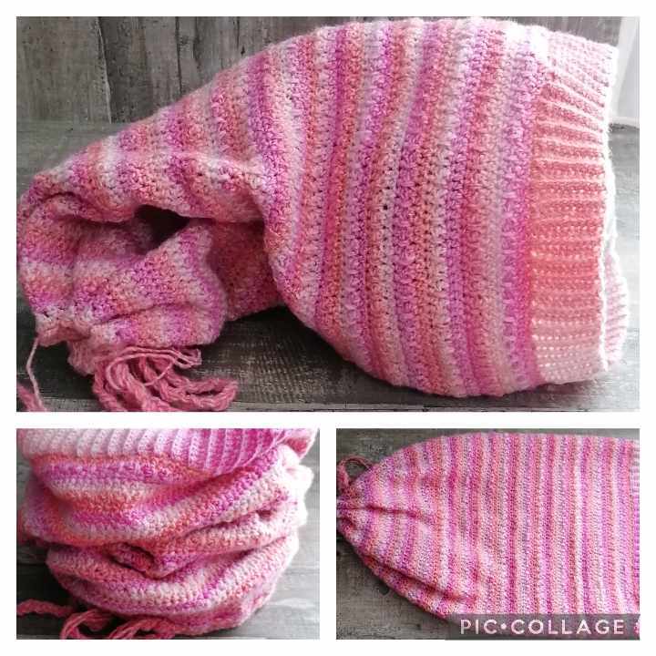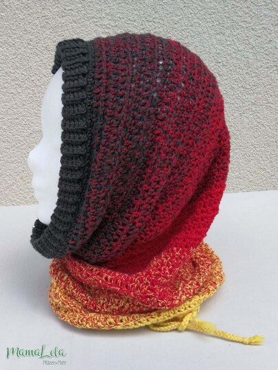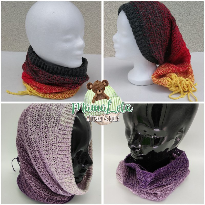 Mit dieser Häkelanleitung könnt ihr euch den/die im Artikelbild gezeigte/n Schlauchmütze/Loop zaubern.