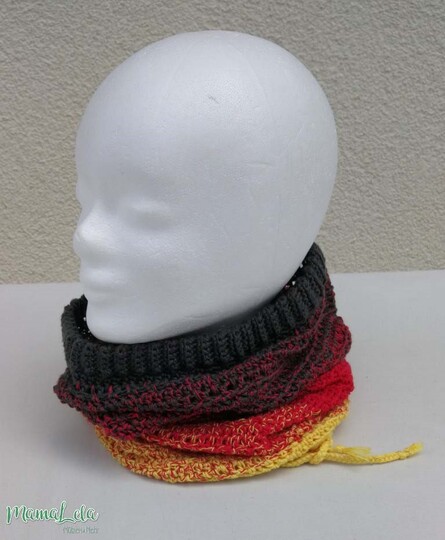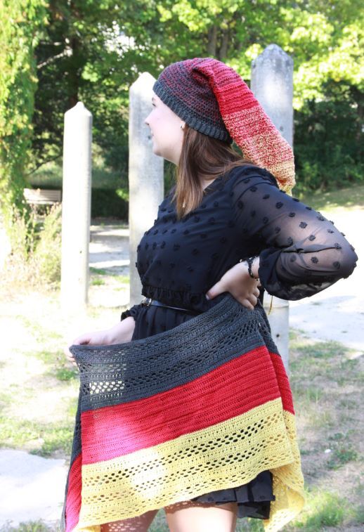 Da die Farben aber wohl nicht jeden ansprechen habe ich mir passend zu EM 2024 die Anleitung zur Hand genommen und diese noch einmal in alltagstauglichen Farben gehäkelt. So kann die Schlauchmütze/der Loop jeden von uns durchs Jahr begleiten. Also nehmt euch eure Lieblingsfarben zur Hand und zaubert euch einen feinen Halsschmeichler.