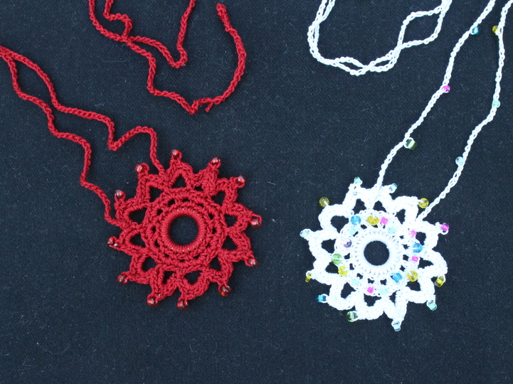 Material: * Baumwollgarn, mercerisiert in den Stärken 1,5 – 1,75 für das rote Modell -