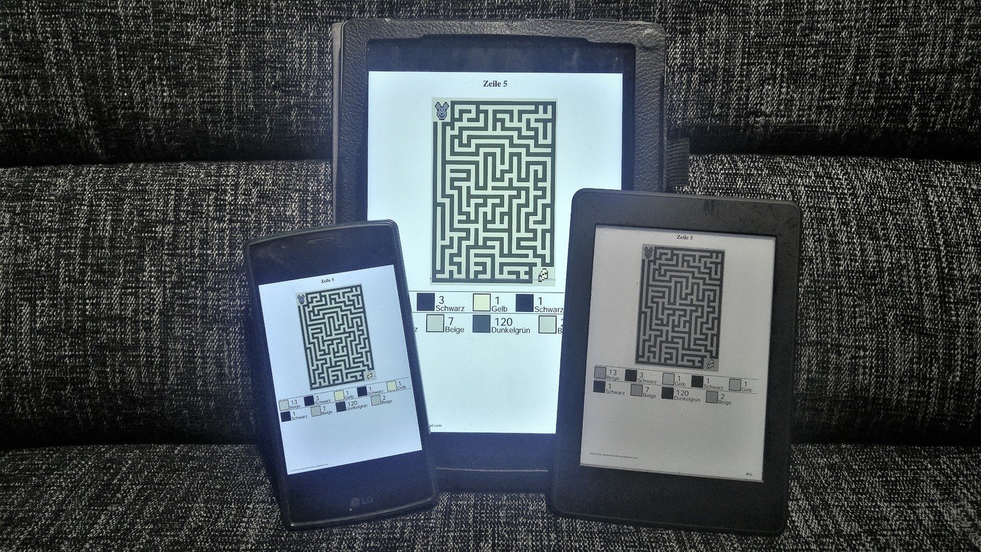Die Anleitung enthält zusätzlich eine PDF Datei mit der genau abgezählten Maschenanzahl jeder Farbe pro Reihe. Diese Datei kann auf Tablet und / oder E- Book Reader geladen werden um auch unterwegs bequem häkeln zu können. :)
