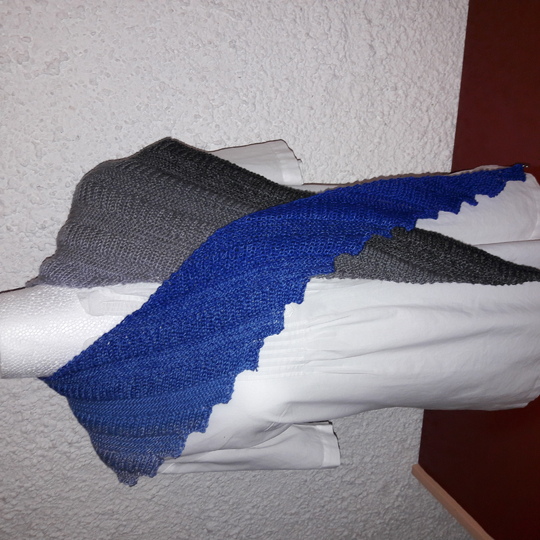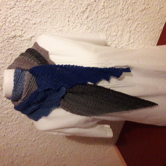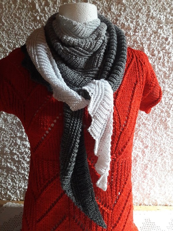 Der Zackenschal Schattenspiel ist ein weich fallender Schal, der auch in der wärmeren Jahreszeit getragen werden kann.